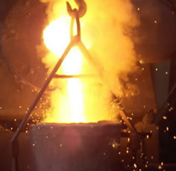 Disponemos en la zona de fusión de un Horno de Inducción marca Inductotherm de 750Kw de unidad de potencia. Podemos fundir piezas de hasta 2.500 Kg. de peso y tenemos una capacidad de fusión de 150.000 kilos netos por turno por mes.